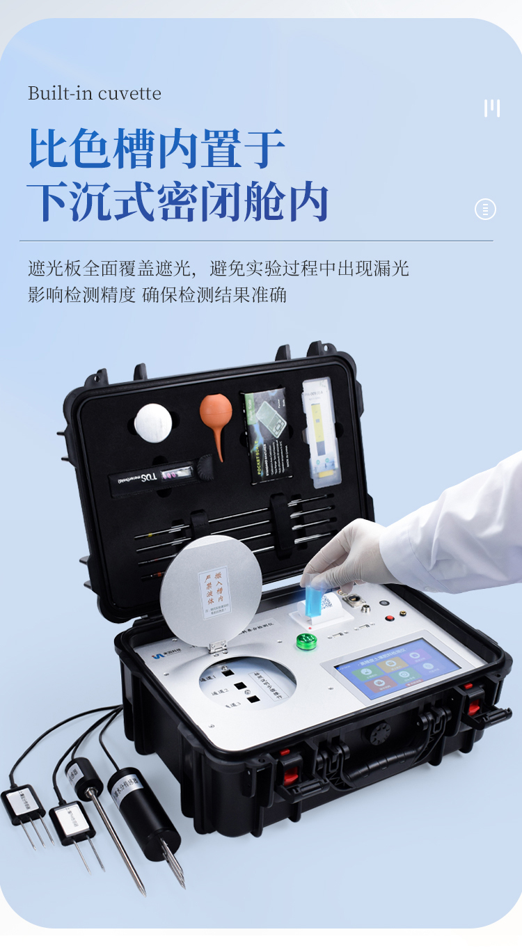 检测速度:在正常熟练程度下,测土壤铵态氮、磷、钾三项要20分钟(含土样前处理及药剂准备),测肥料氮、磷、钾三项需50分钟左右,微量元素单项检测需20分钟左右,土壤水分、温度、ph、盐分可即时显示。